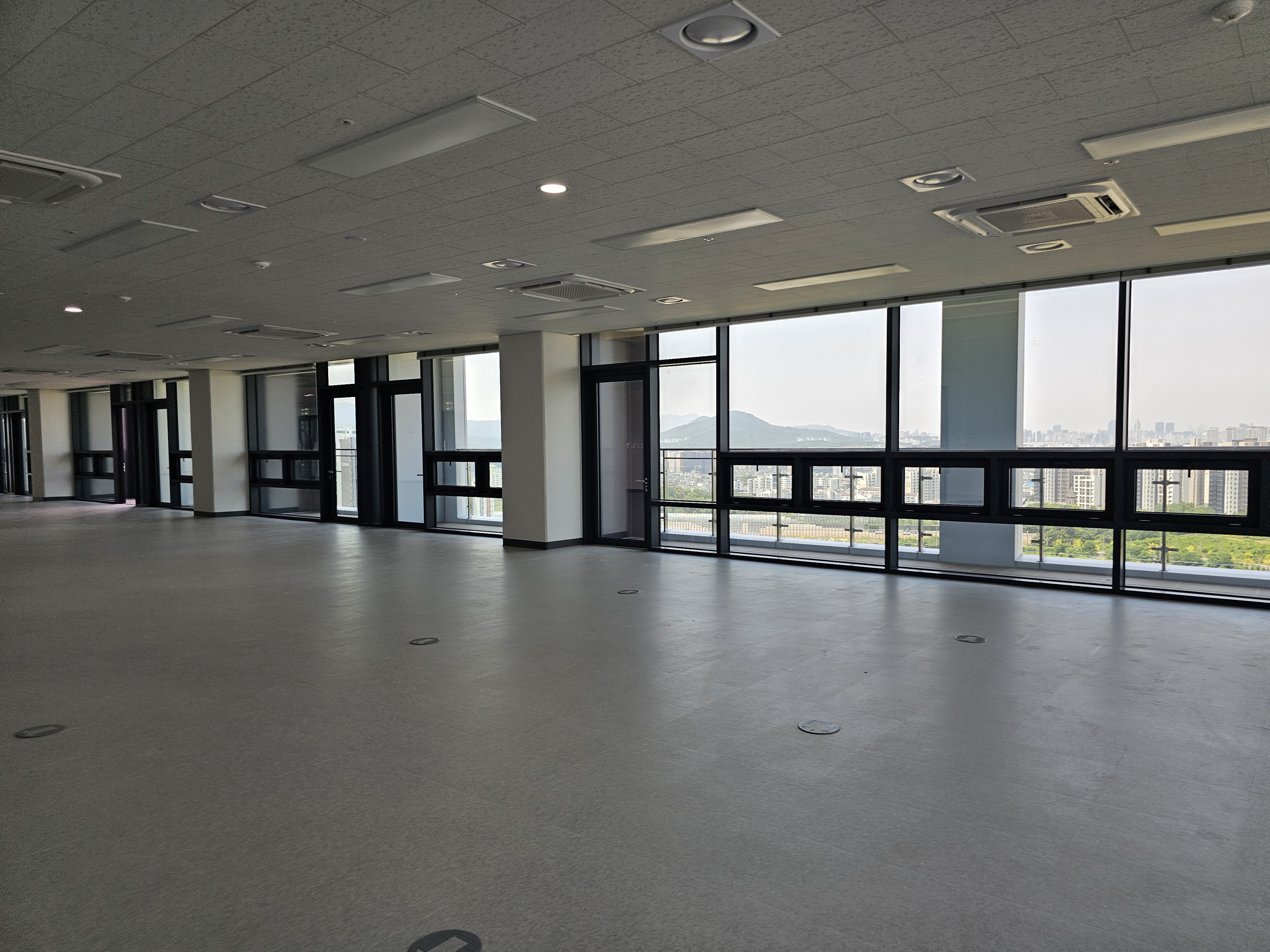 멋진 조망권을 볼 수 있고, 냉난방기까지 모두 설치 되어 있어서 임차를 원하는 회사들한테는 냉난방기를 따로 설치를 하지 않아도 됩니다.