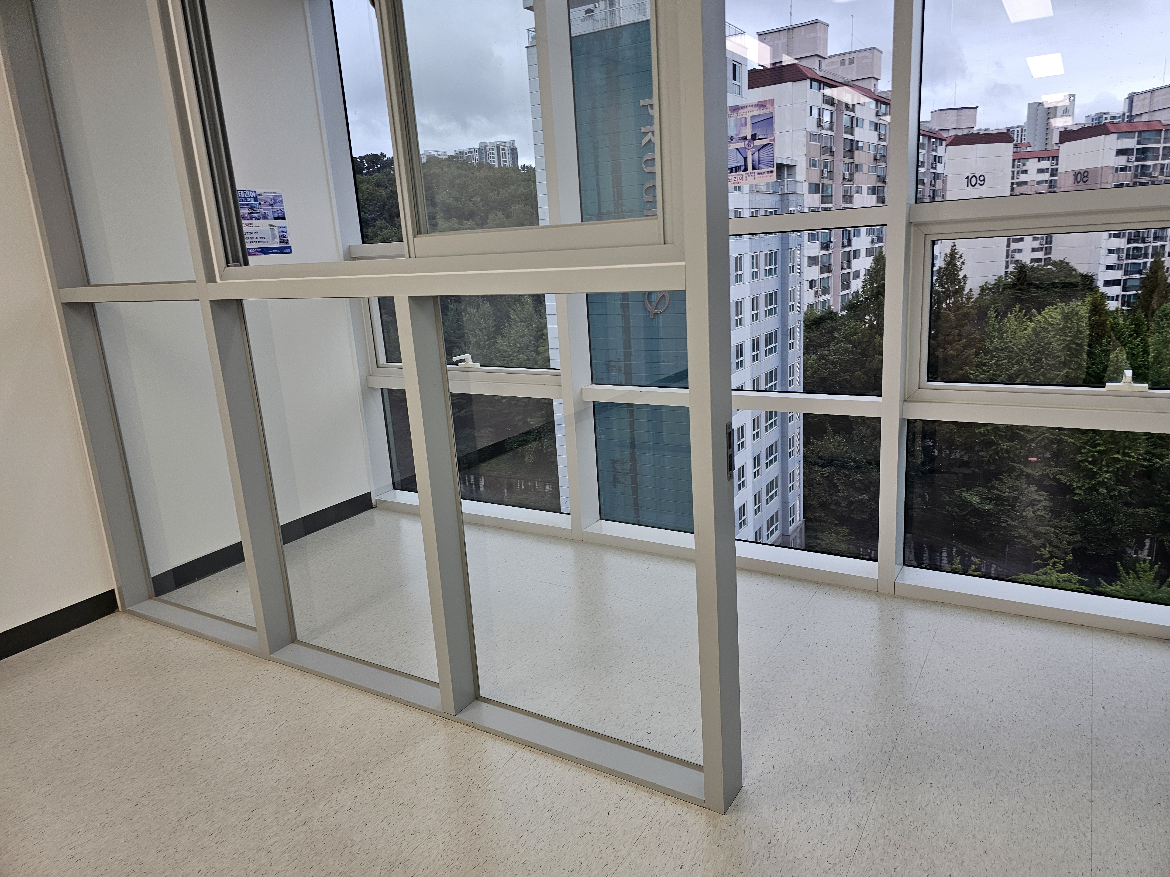 창문 밖으로는 길 건너편 금정역푸르지오 아파트를 볼 수 있구요.