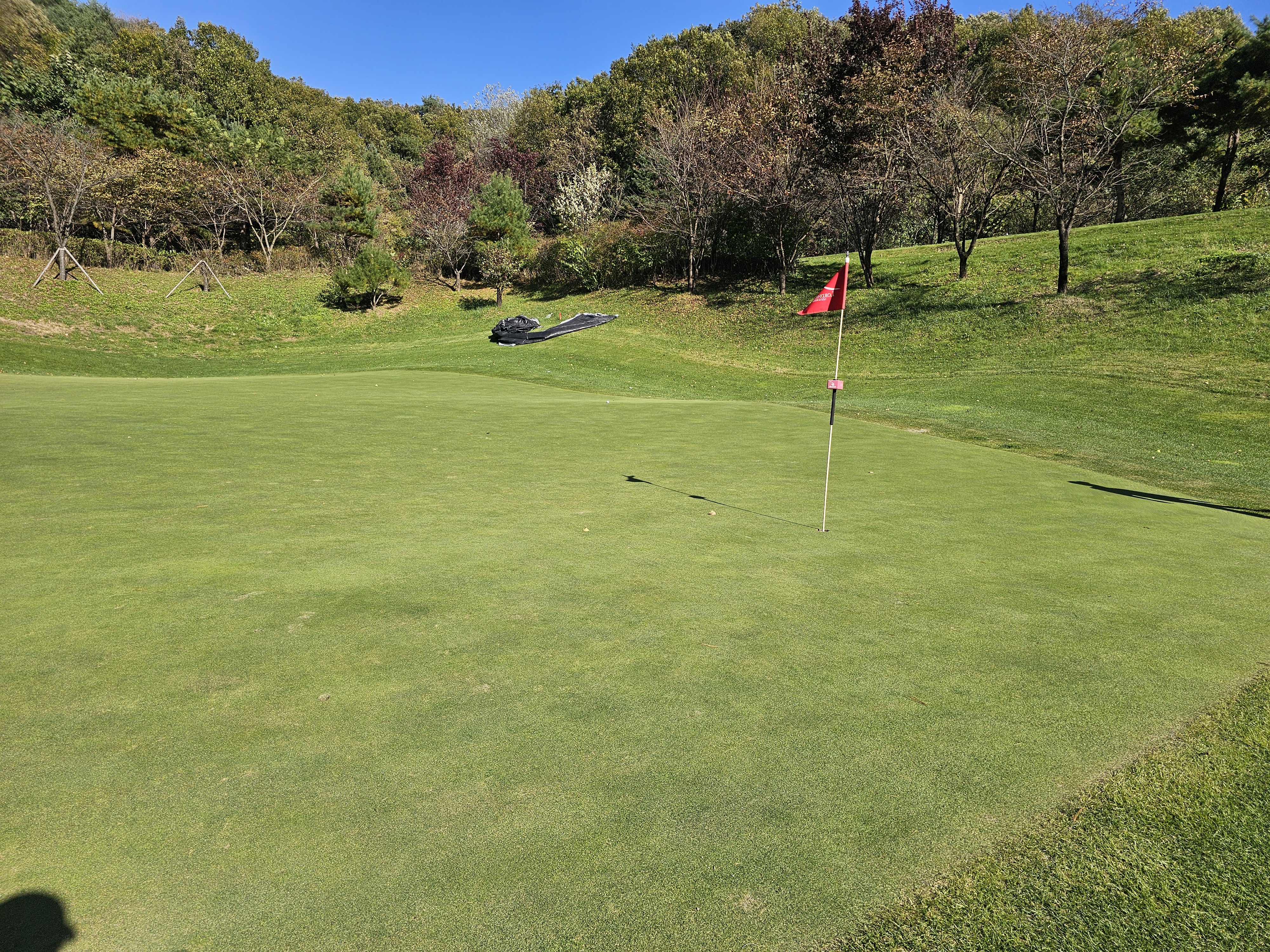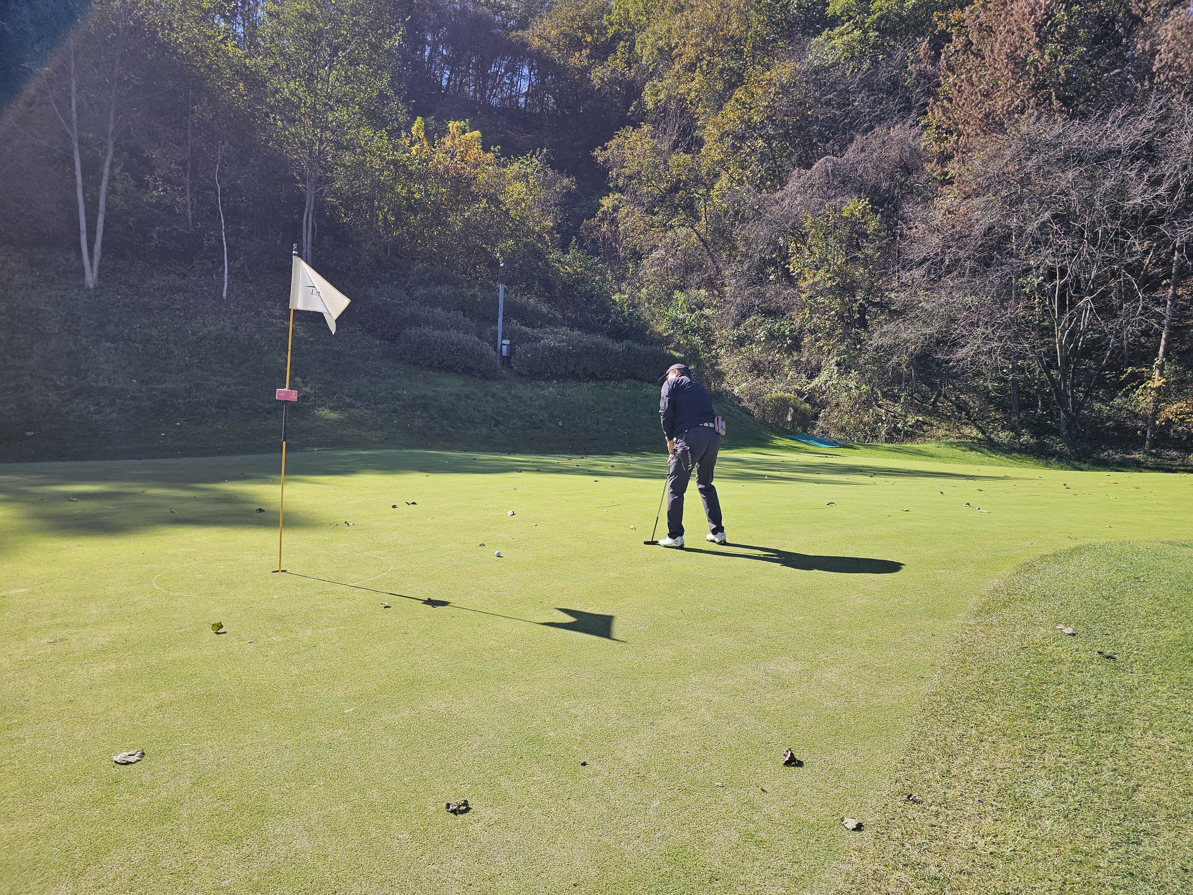 2단 그린이라 조금 길었을 경우에는 쓰리 퍼터도 생각해야 하구요.
