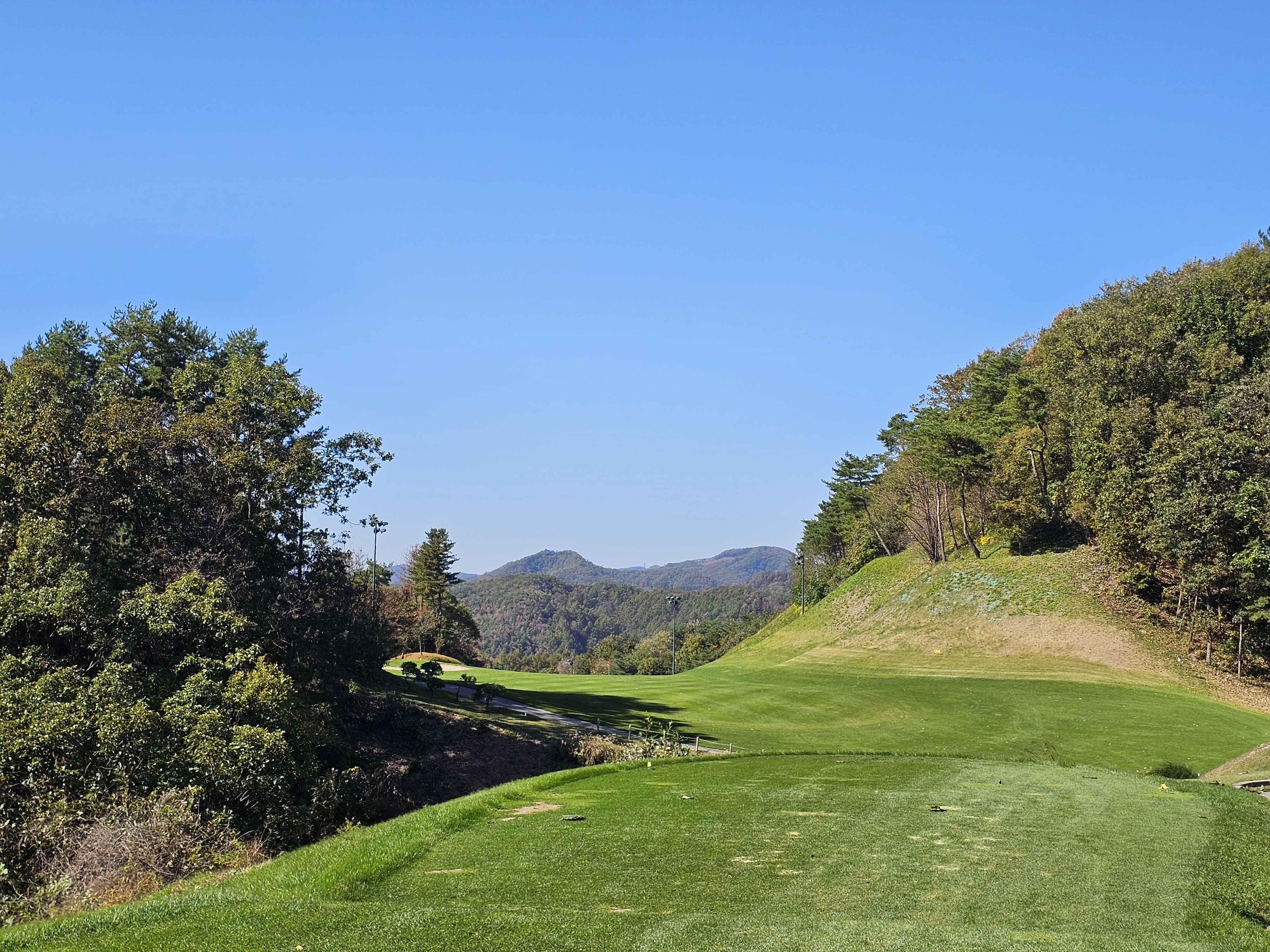 1번 홀 보시는 것처럼 앞에는 장애물 또는 개미허리 홀들이 대부분 입니다.