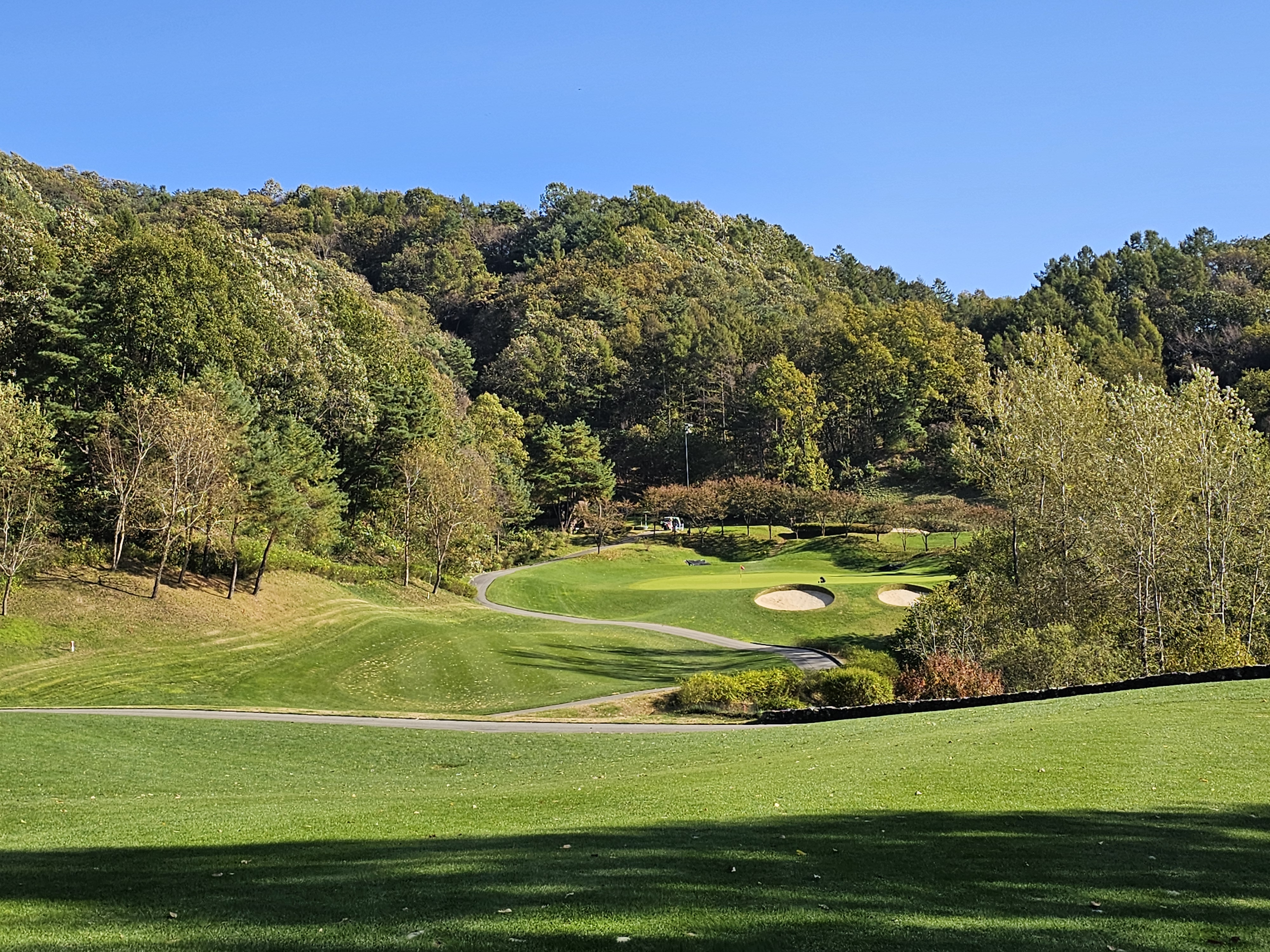 그린 주변에는 완만하게 되어 있어서 티샷만 잘하면은 괜찮습니다.