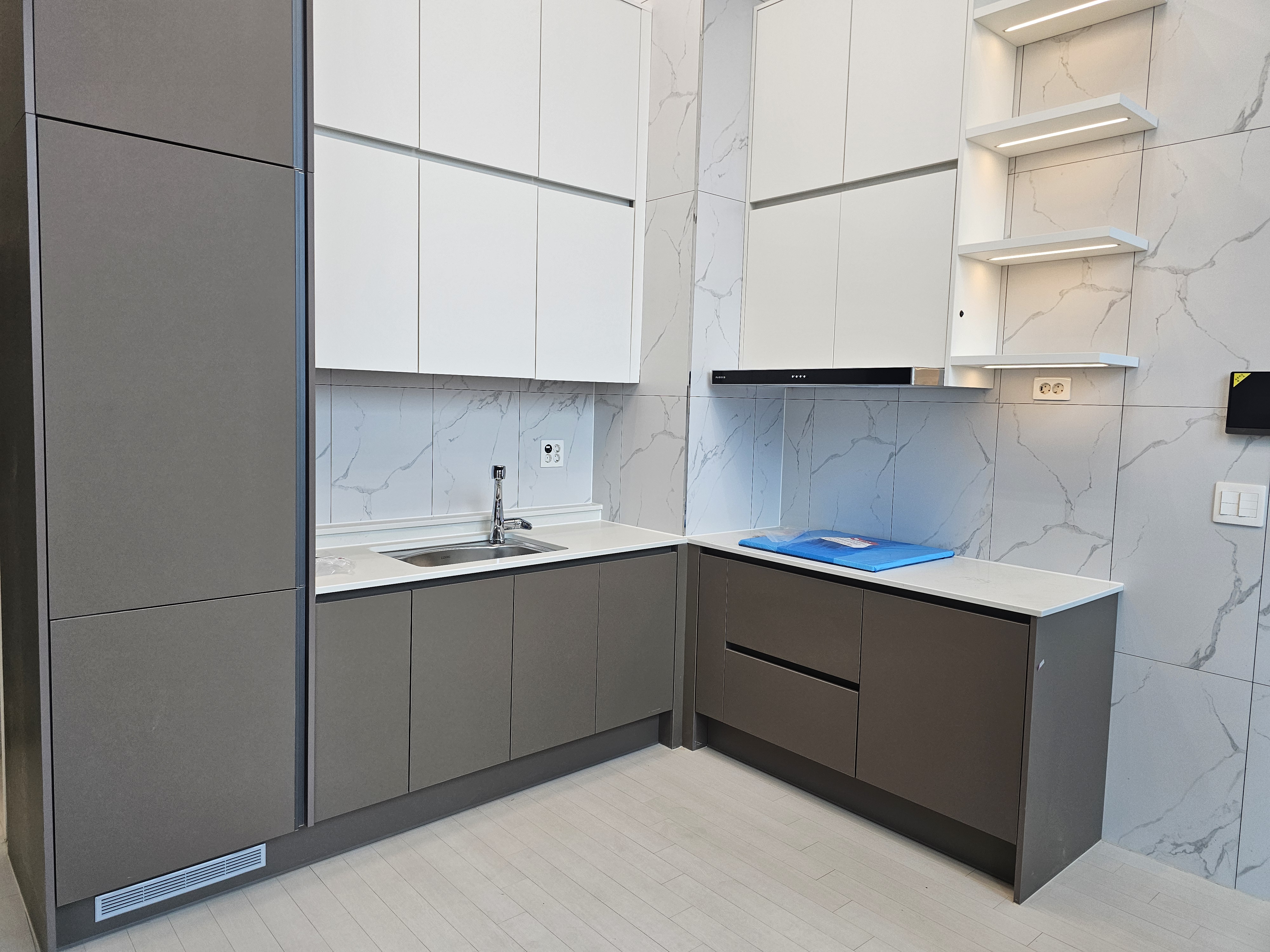 음식물을 싱크대에서 갈아서 버리는 구조로 되어 있는 주방입니다.