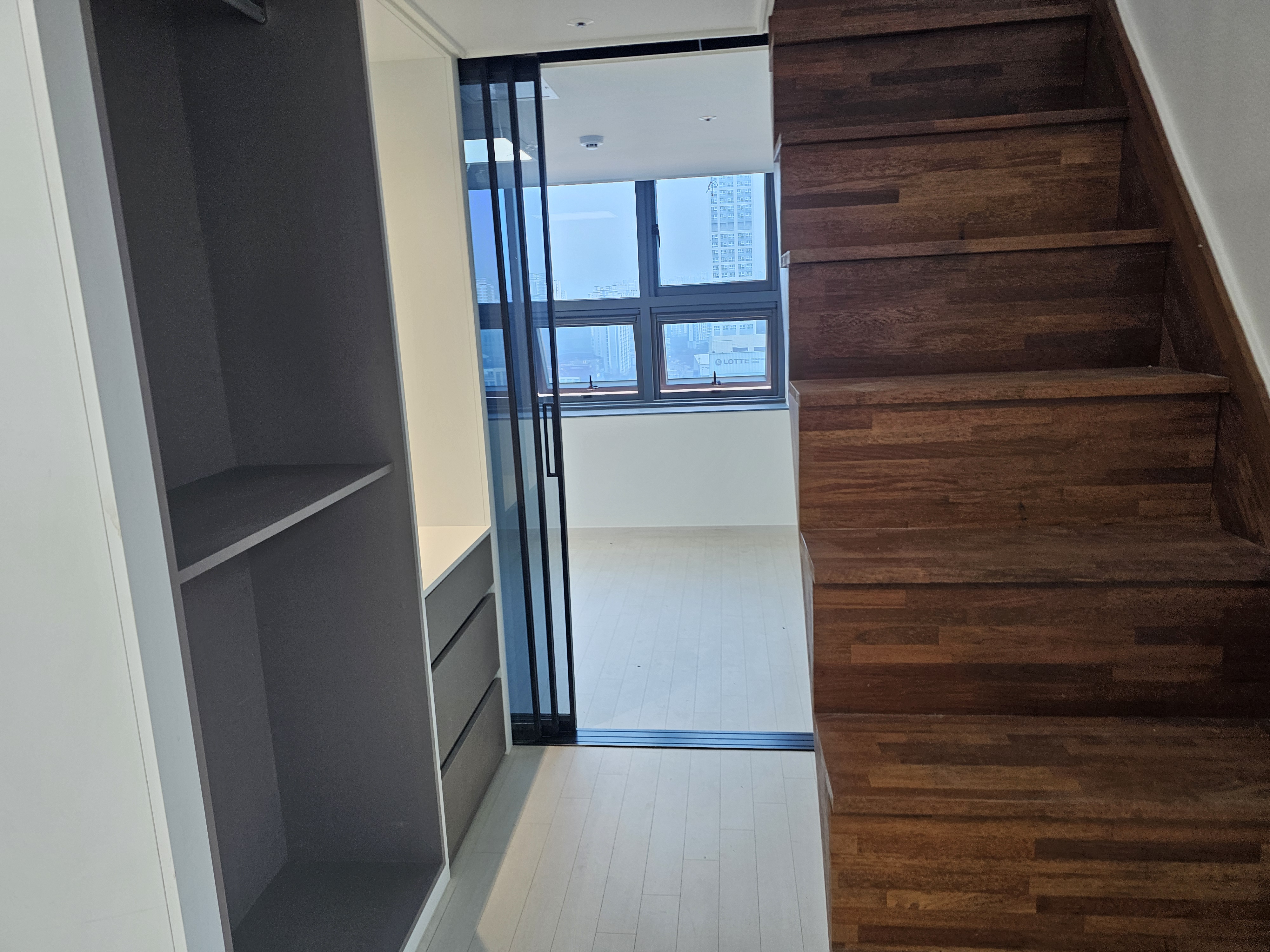 복층으로 올라가는 계단 옆에는 서랍장으로 쓸 수 있는 공간들도 있구요.