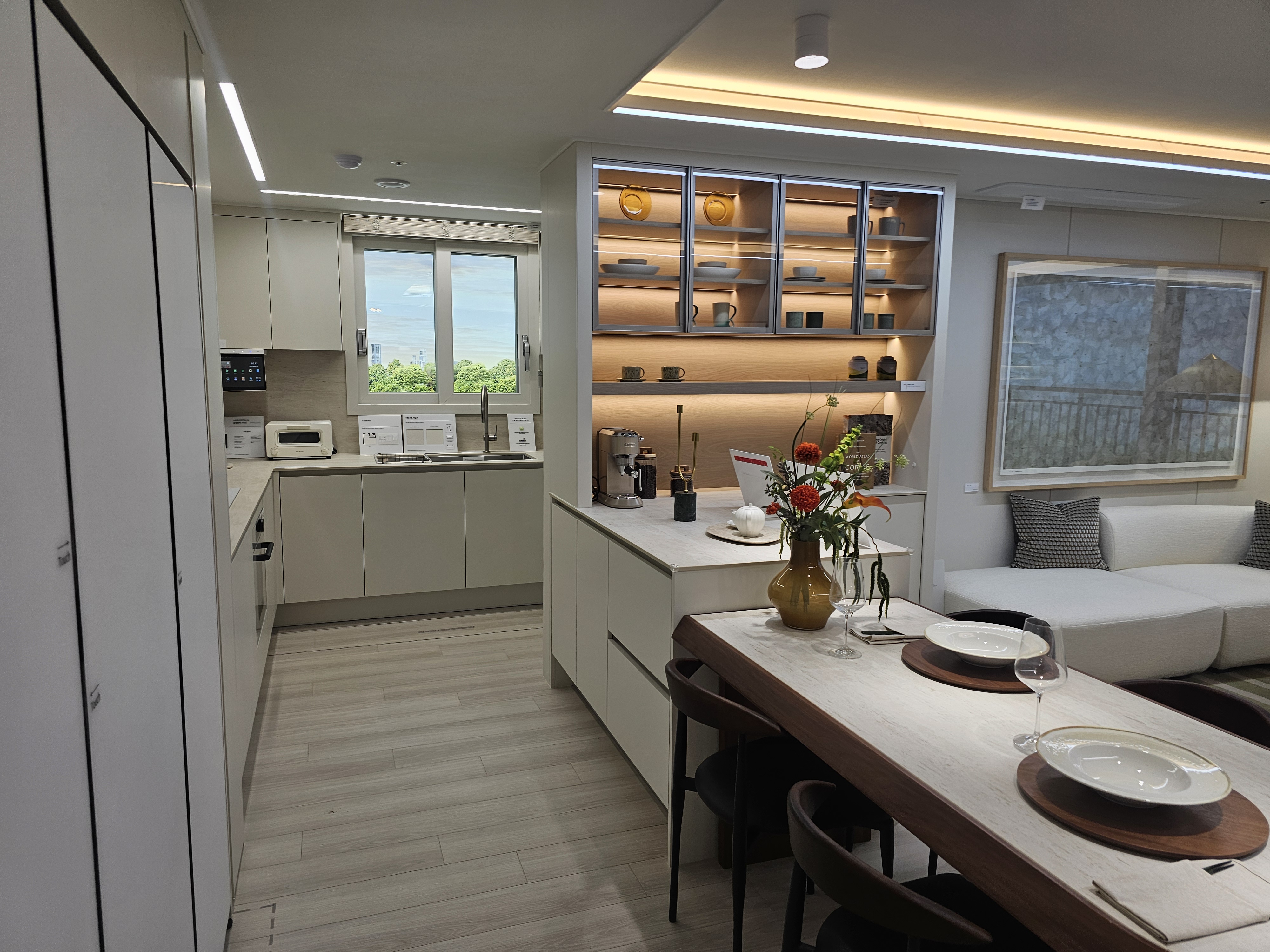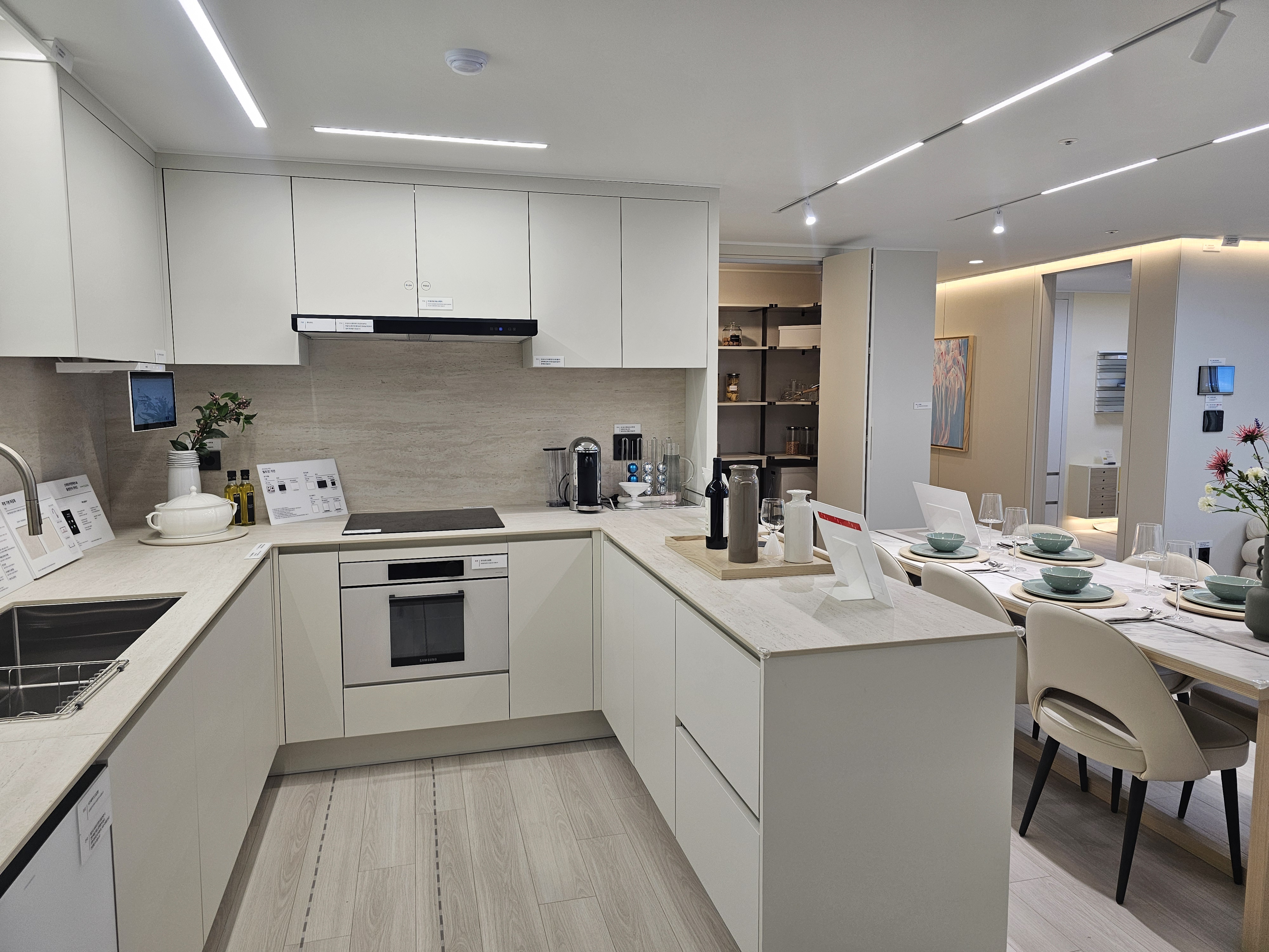주방 구조 시스템으로는 동선에 맞게끔 가전제품들이 잘놓여져 있고,